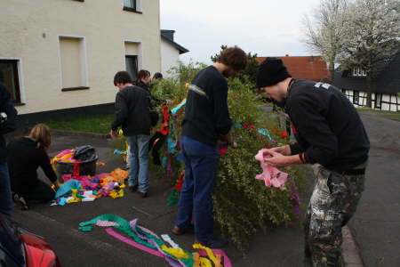 ... gemeinsam werden die Maibäume geschmückt
