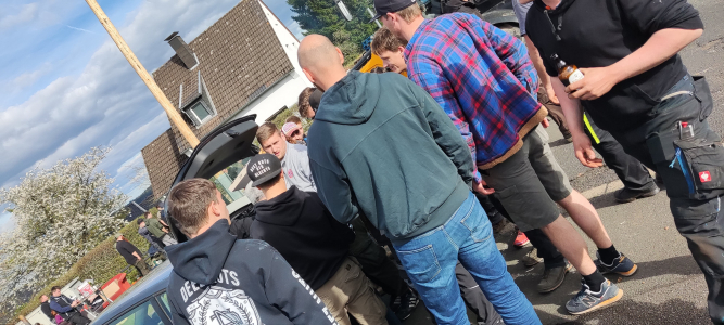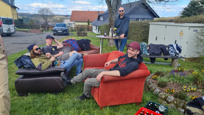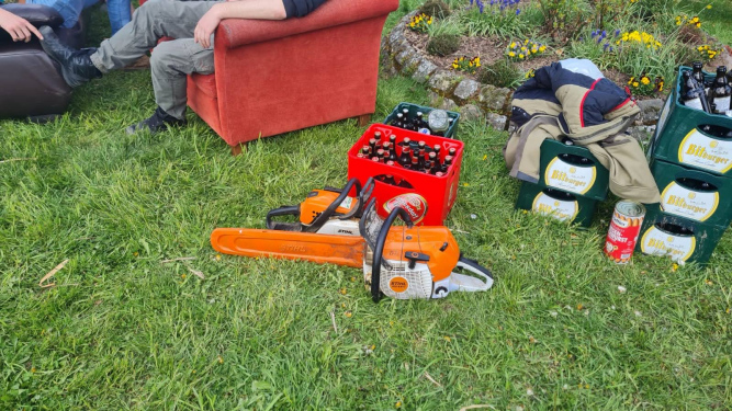 Bei wunderbarem Wetter, war bei bester Laune für Speis und Trank gesorgt. Mittels eines selbstgebauten Ofen von Armin Klinkhammer und Jörg Zänker wurden Hot Dogs an die hungrigen Mäuler verteilt.