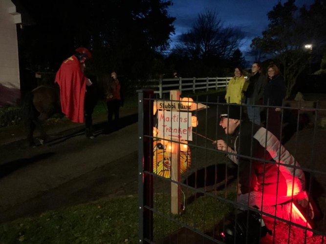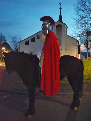 Aufgrund der Corona-Restriktionen musste der  traditionelle Martinszug, das Martinsfeuer und die alljährliche Martinsverlosung ausfallen. Aber die Organisatoren ließen sich etwas einfallen. Die Scheurener schmückten ihre Häuser und Fenster mit Fackeln und bunten Lichtern. Der St. Martin ritt durch das Dorf und fleißige Helfer verteilten unter Beachtung der Abstandsregeln die wie immer recht großen Scheurener Weckmänner an die Kinder und die Senioren.