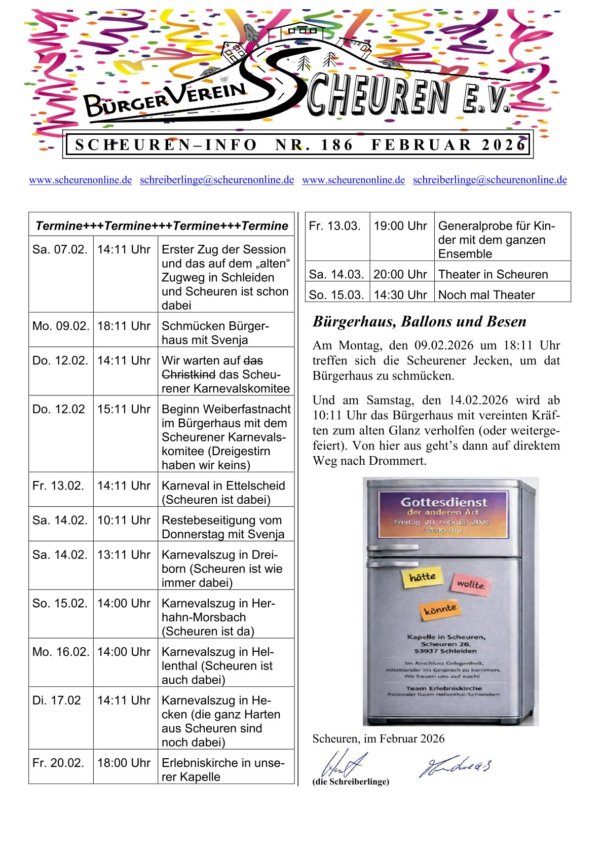 Dieser Beitrag wurde am 3. Februar 2026 von Heinen unter Scheureninfo veröffentlicht.
