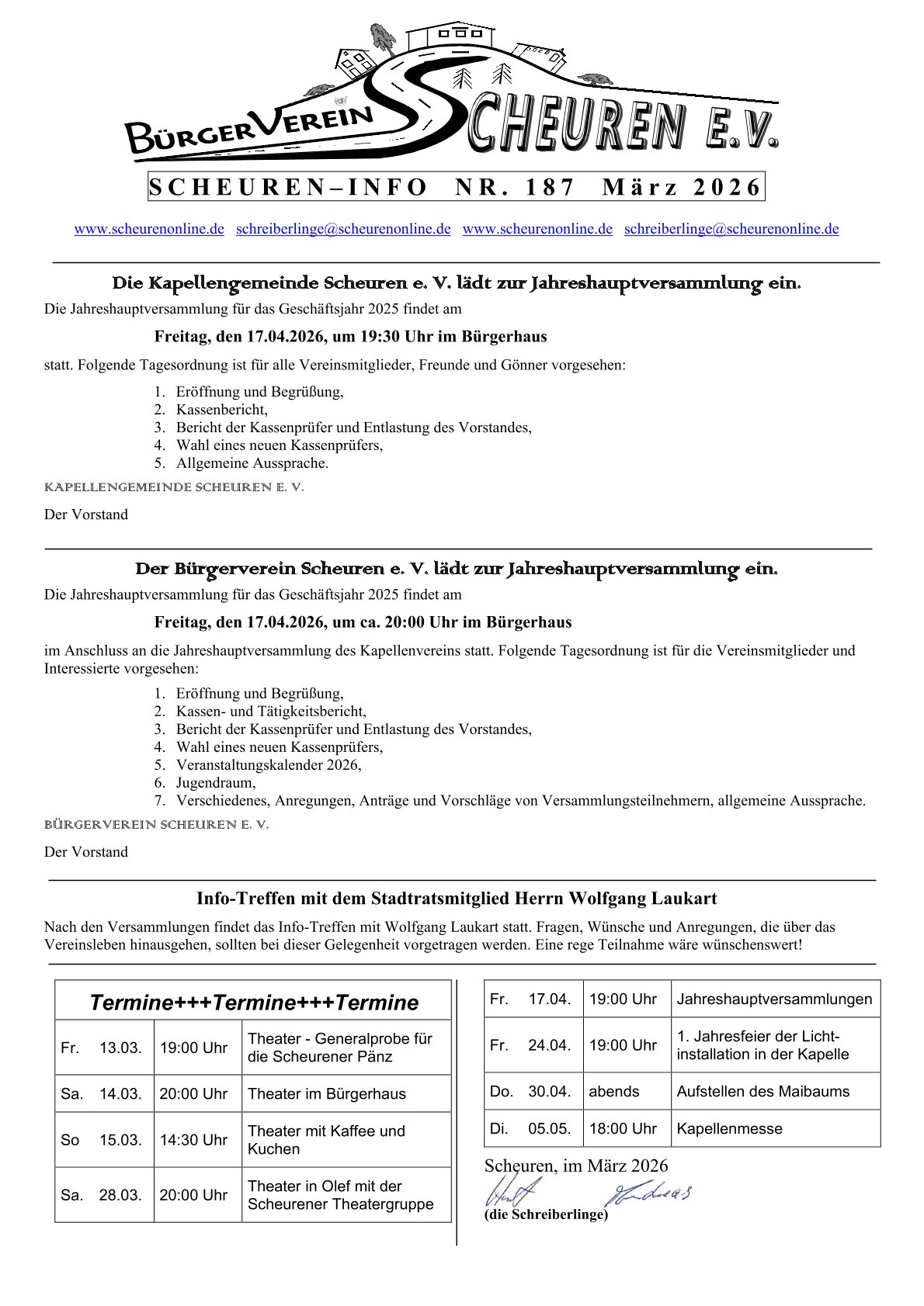 Dieser Beitrag wurde am 16. März 2026 von Heinen unter Scheureninfo veröffentlicht.
