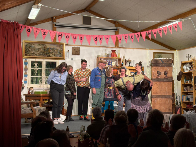 Den Abschluss bildete die Sonntagsvorstellung am Nachmittag, bei der erneut zahlreiche Besucher den Weg nach Scheuren fanden. Auch hier wurde viel gelacht, geschmunzelt und applaudiert. Die Mischung aus Humor, skurrilen Einfällen und dem besonderen Charme des Amateurtheaters machte den Nachmittag zu einem rundum gelungenen Erlebnis.